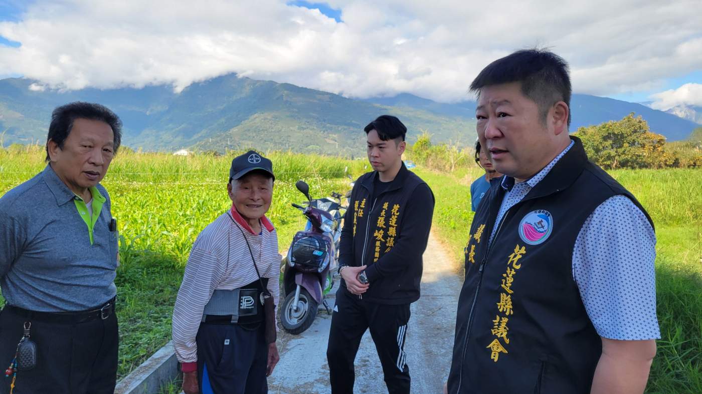 1/31日上午花蓮縣議會議長張峻邀集花蓮縣政府農業處農工科王技士、鳳林鎮公所承辦員、陳情人林振鏘、邱姓、林姓等農民,在張峻服務團隊的陪同下一起進行現場會勘。