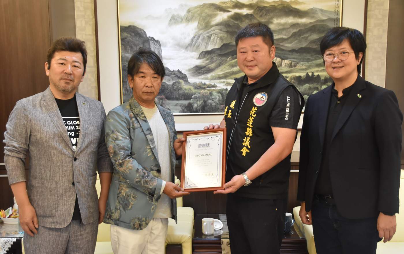 花蓮0403地震,國內外善心人士紛紛捐贈善款賑災,在日本美髮美容界頗具影響力的組織SPC GLOBAL,也向會員發動募款,並在6/3日下午由三位代表親自來到花蓮縣議會,捐贈120萬日圓。在議長張峻、居中促成的無黨聯盟總召楊華美、以及多位議員的接待下,完成簡單的捐款儀式,張峻議長對日本朋友的愛心無國界,表達最高的謝忱與敬意,雙方在議長室相談甚歡。