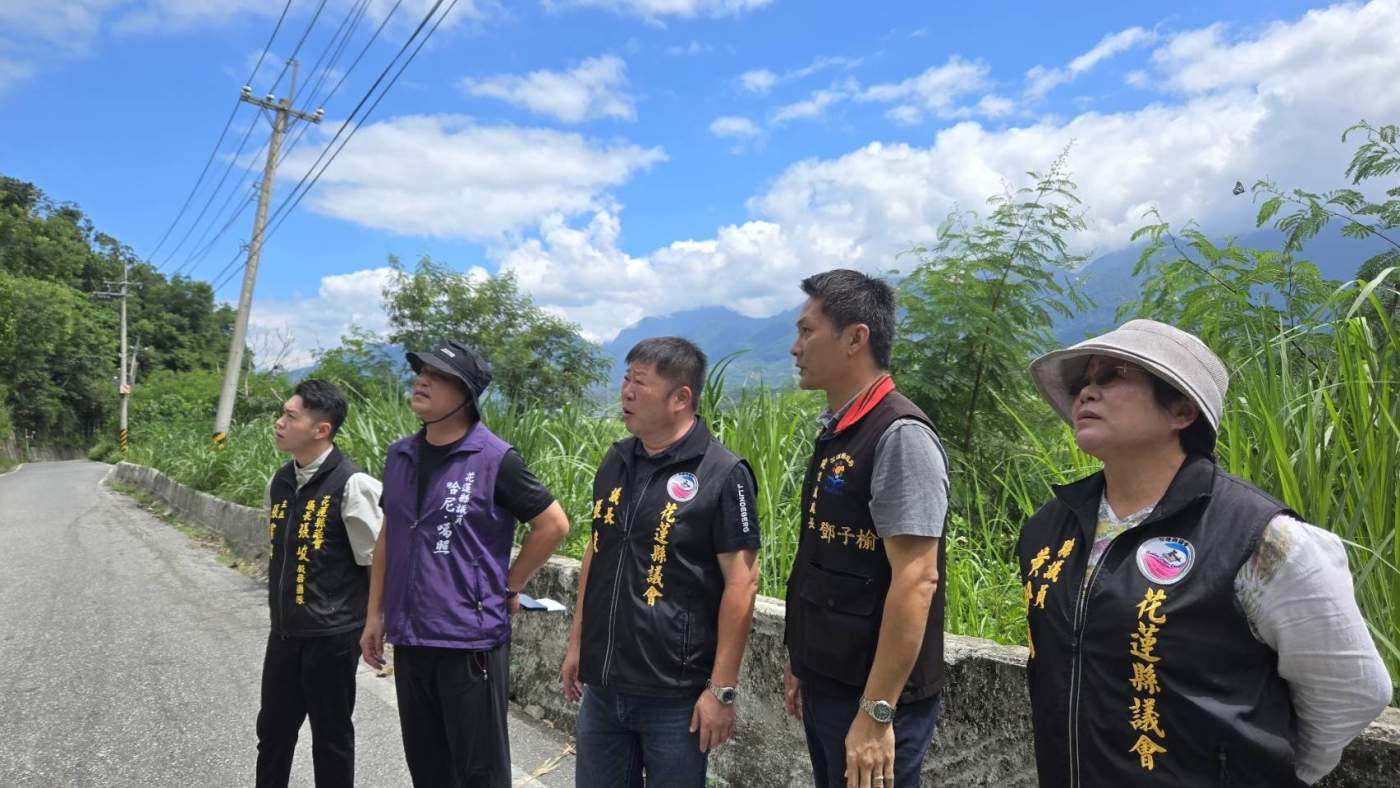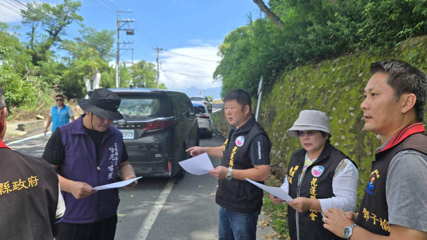 花蓮縣議會張峻議長偕同農業小組總召黃玲蘭議員及哈尼噶照議員,邀集花蓮縣政府建設處長鄧子榆、土木科科長蔡國松一起前往花75線和193縣道進行會勘,並了解道路改善工程進度。