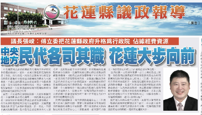 議長張峻:傅立委竟把花蓮縣政府升格為行政院 佔據經費資源 中央與地方民代各司其職 花蓮才能大步向前