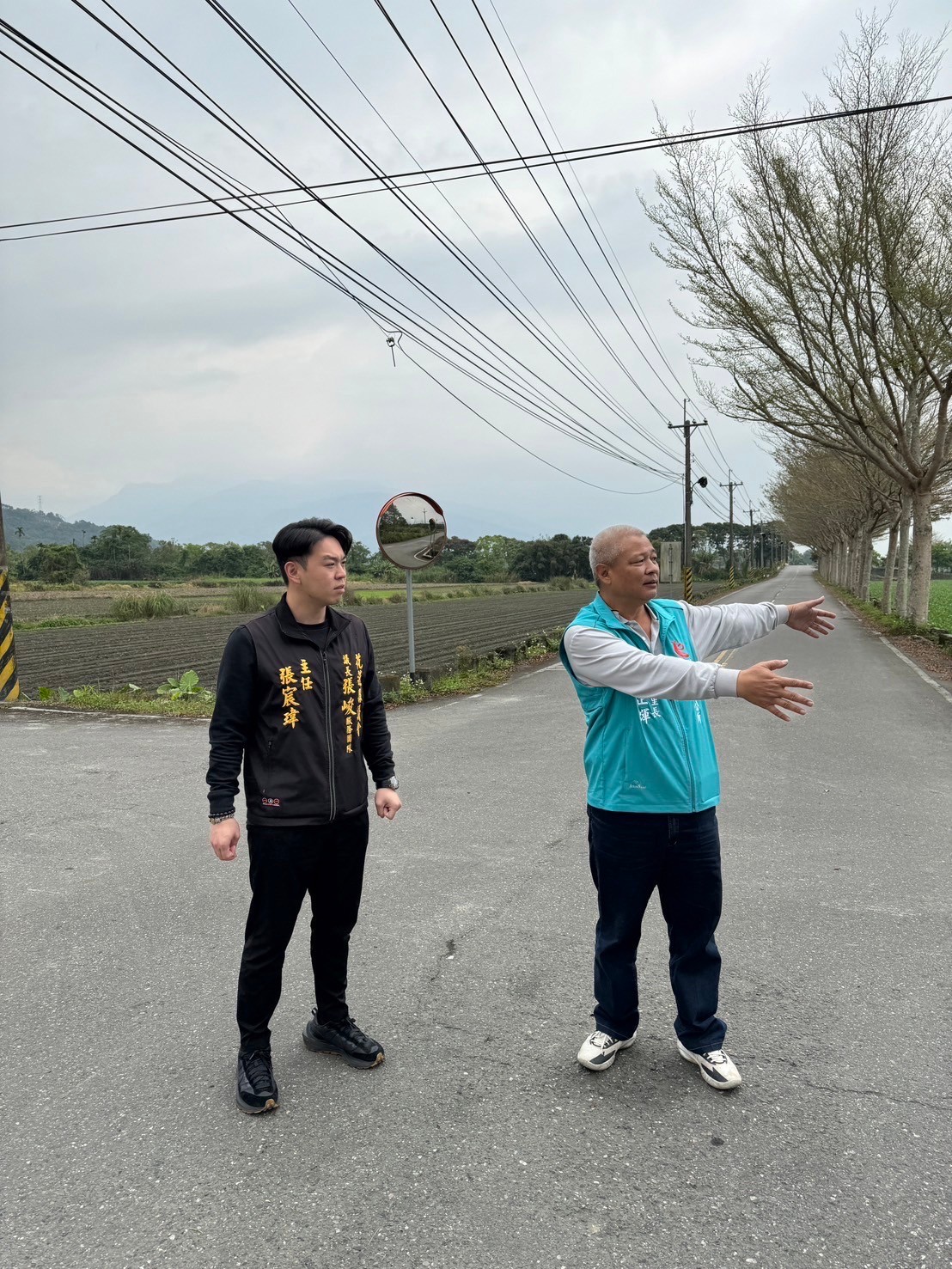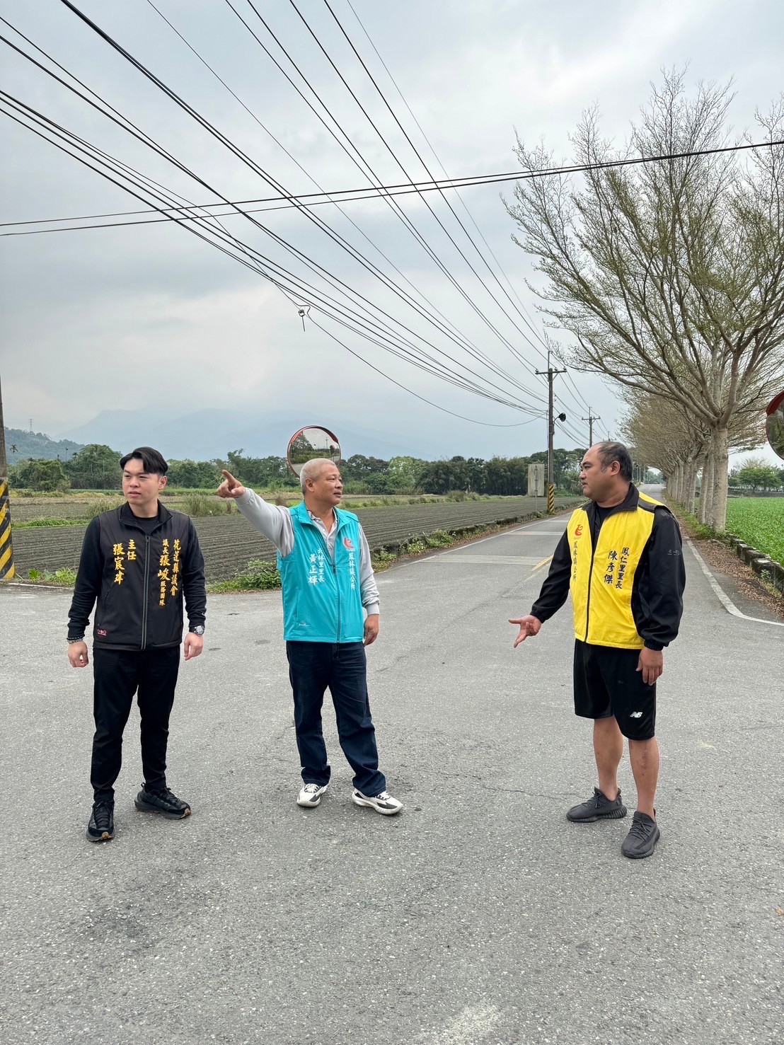 3/14上午張峻議長服務處主任張宸瑋偕同服務團隊邀集鳳仁里里長陳彥傑、北林里里長黃正輝一同至現場確認裝設位置。由於該路段路口未設交通號誌,僅有反光鏡,為了加強行車安全,降低事故,減少傷亡,因此太陽能警示燈將裝設於鳳林鎮平園路與中正路二段和農園路與北林里產業道路兩處交叉路口,各設一具太陽能警示燈,以提醒用路人交叉路口減速慢行。