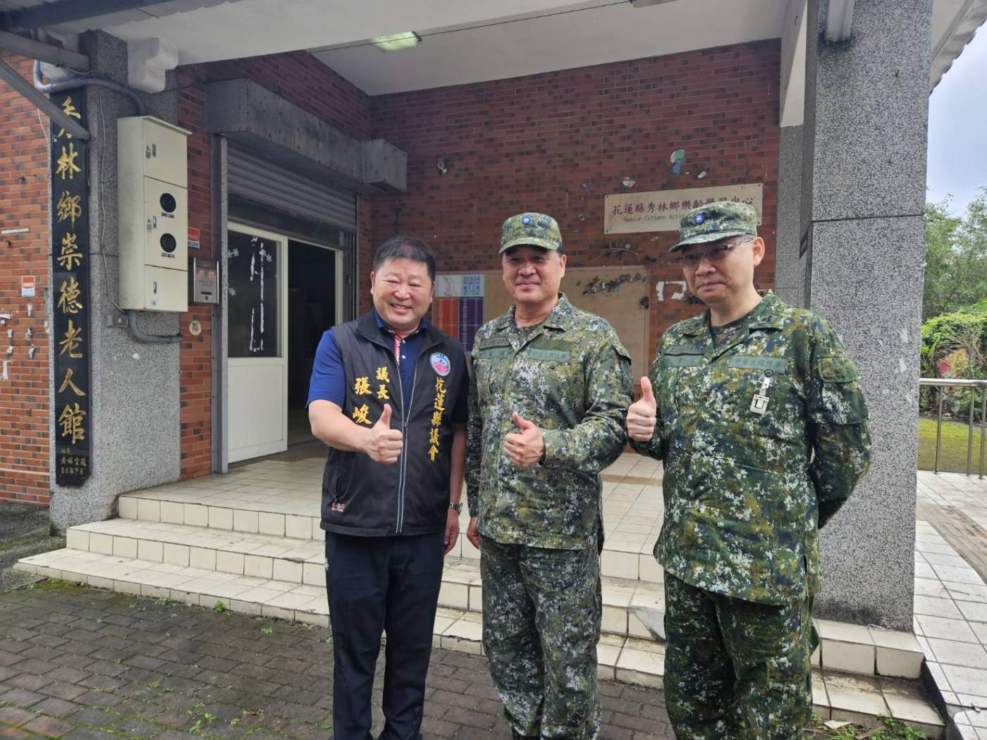 花防部指揮官俞文鎮中將帶領花防部政戰主任謝子偉上校,在賑災物資運抵崇德老人會時,前來向張峻議長致意,並說明目前的救援狀況和進度。陸軍第二作戰區指揮官俞文鎮中將,於災害發生第一時間即率編組人員趕赴災區現勘,並配合縣政府指揮部隊執行救援事宜。