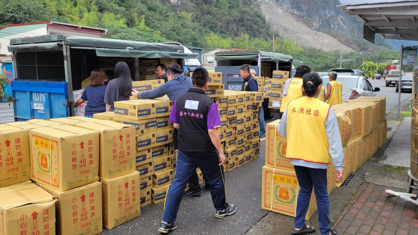 4/6日一大早,張峻議長與華人太子愛心關懷協會便載運著四台貨卡前往秀林鄉崇德老人會,此次物資共有白米2000斤,泡麵400箱,米粉200箱,此批賑災物資每一箱均需詳細秤重並標上重量,以利直升機精準的計算出運送之承載重量,下午已開始由直升機分批吊掛至災區,再進行定點投放。