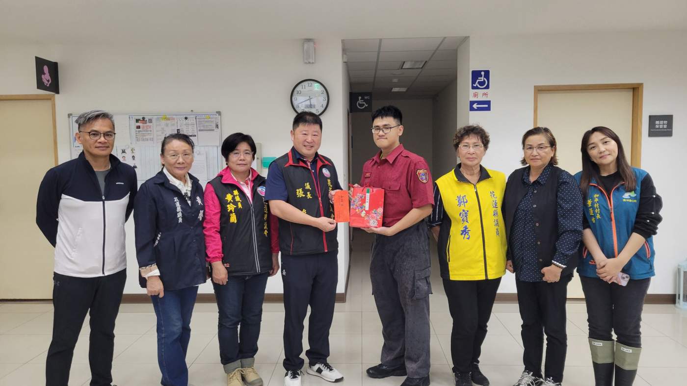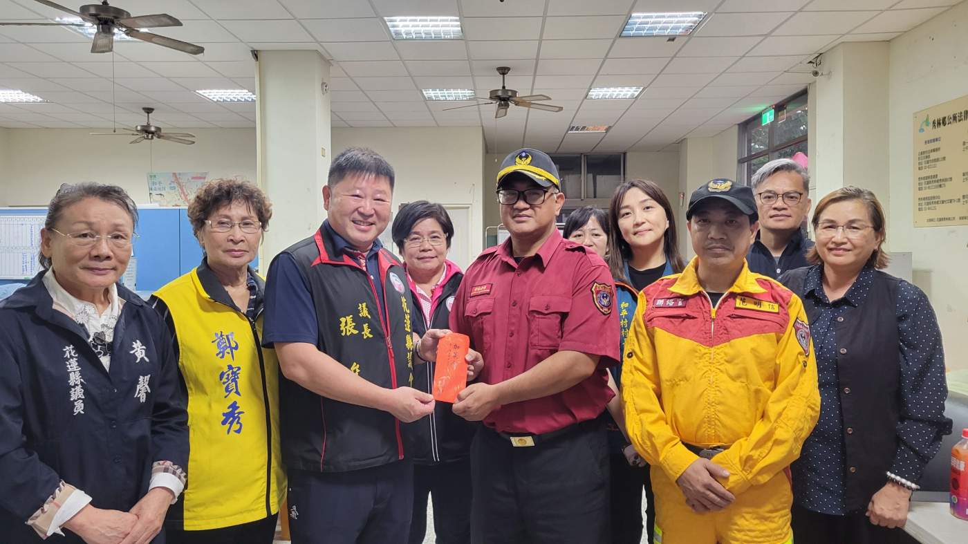 張峻議長偕同議員前進和平村收容所發放慰問金,同時慰勞和平警消和交通隊加菜金