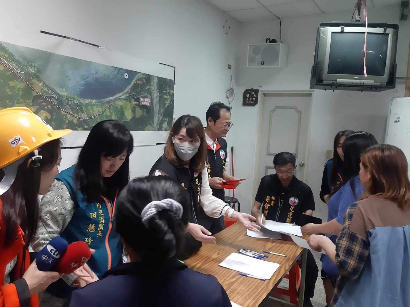 程美蓮議員特別關心和平村被緊急撤離家園的民眾,經向花蓮縣議會議長張峻尋求支援和討論過後,4/25日下午張峻議長偕同黃馨,黃玲蘭,鄭寶秀,程美蓮,簡智隆等議員特別搭乘區間車,帶著慰問金、麵包和牛奶前往和平村收容所探視村民,並為村民加油打氣。也致贈加菜金給和平派出所和特搜大隊和仁分隊及和平與和仁消防分隊,以表達慰勉之意。