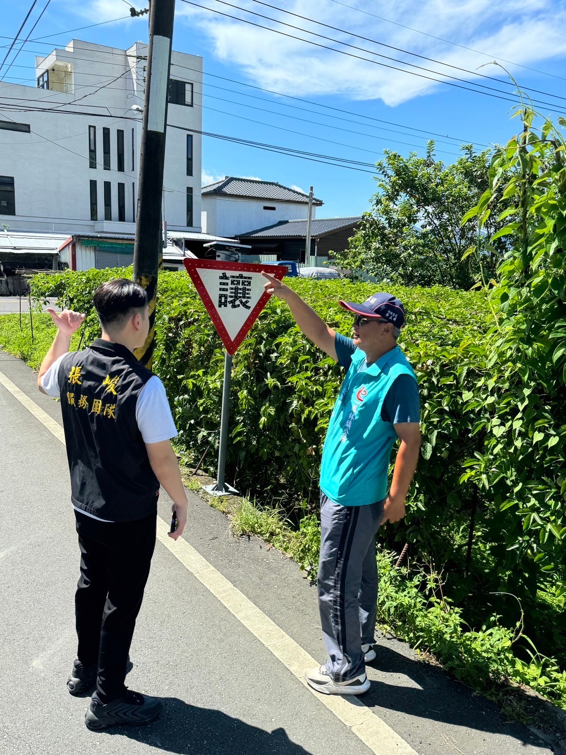 鳳林鎮北林里里長黃正輝日前向花蓮縣議會議長張峻陳情,希望張峻議長能為北林里的重要路口爭取道路標誌設施,經張峻議長極力爭取,該路口道路警示標誌終告完工,7/4日上午花蓮縣議會張峻議長服務處主任張宸瑋邀集北林里長黃正輝及當地居民一起前往現場進行完工會勘,黃里長與當地里民均表滿意。