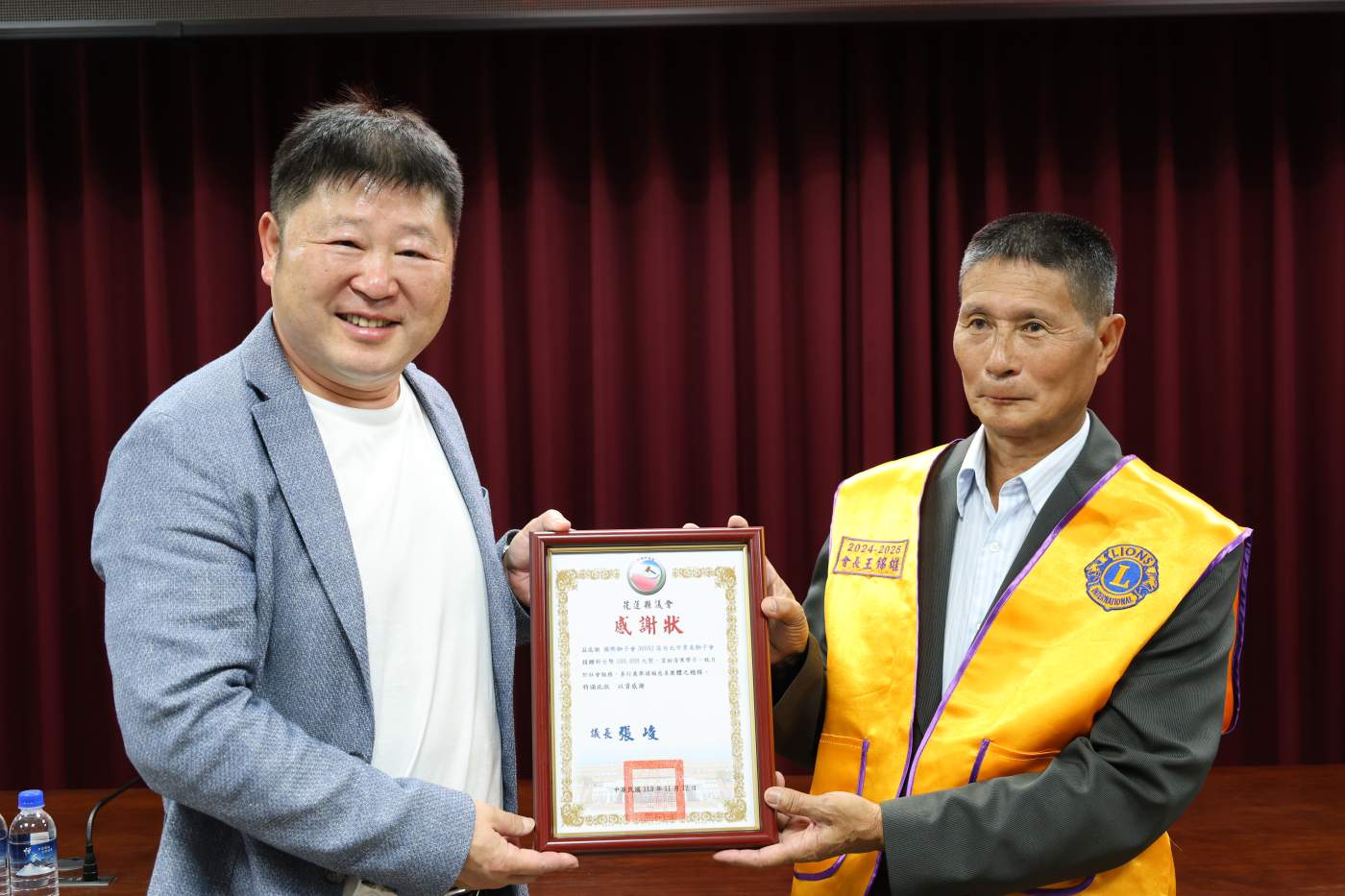 花蓮縣議會議長張峻表示,非常感謝國際獅子會300A2區台北市景美獅子會,