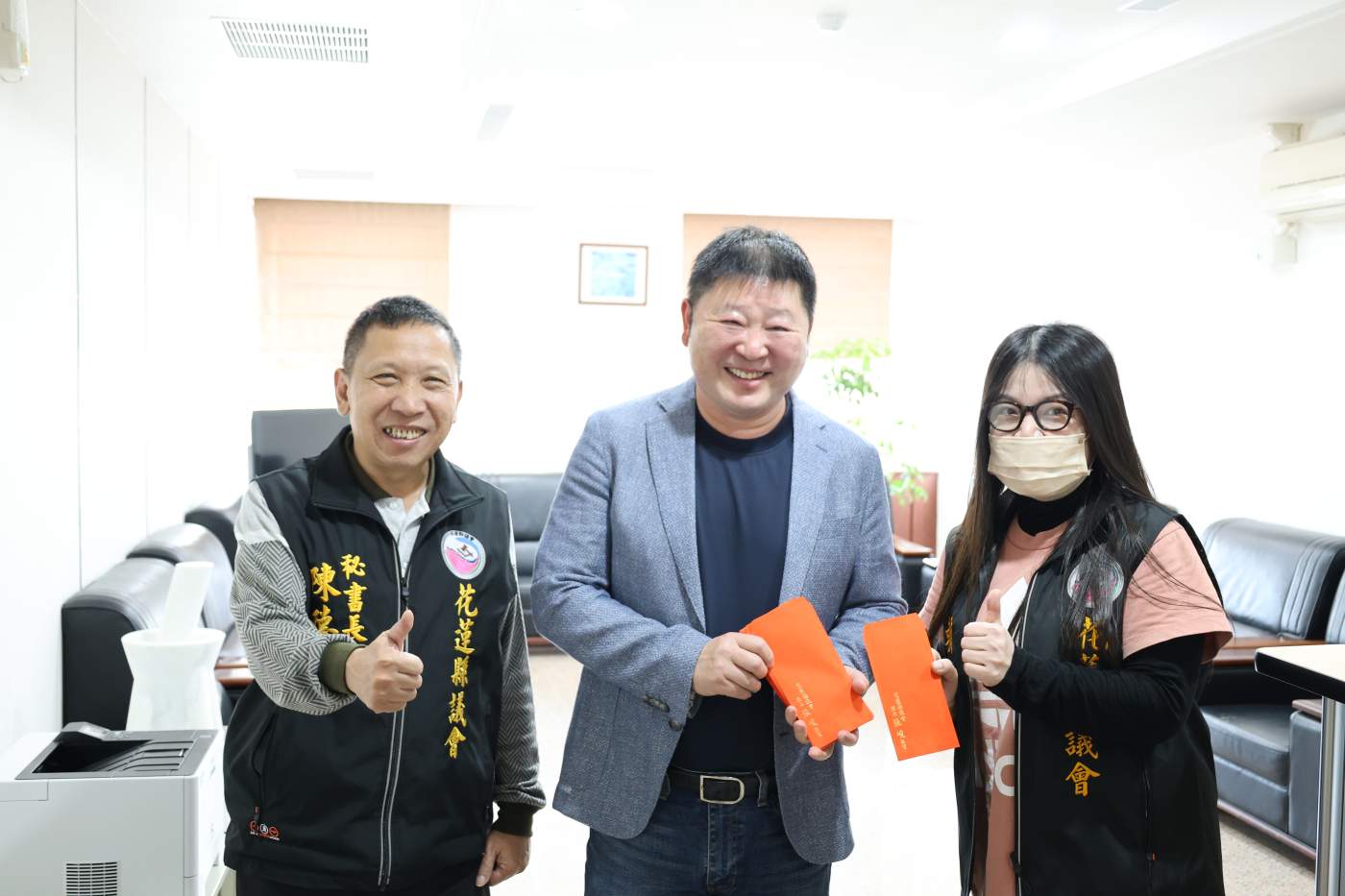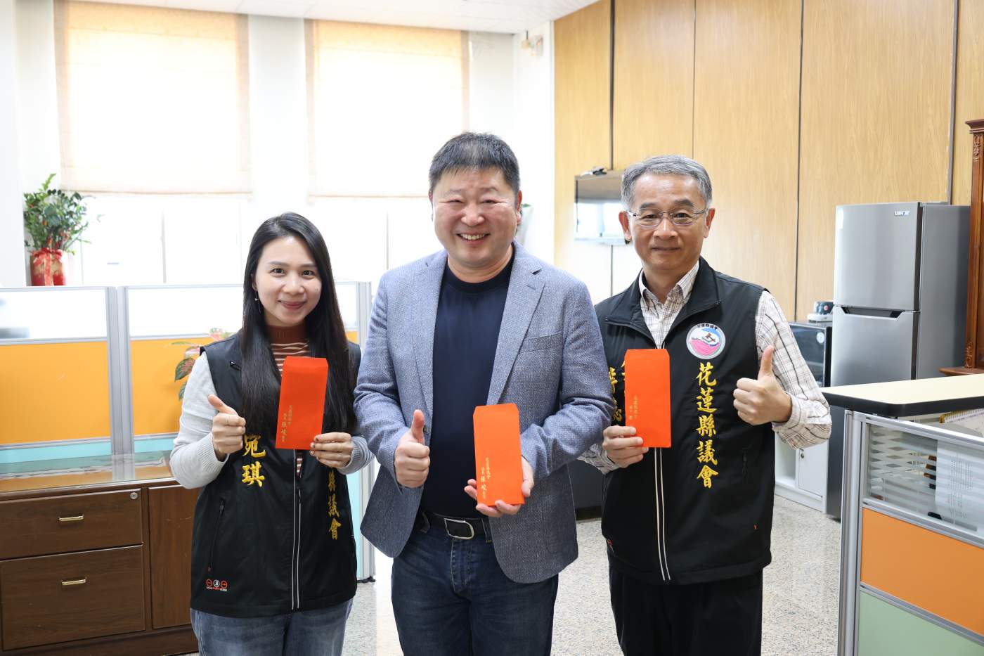 花蓮縣議會在新春前夕,議長張峻於1/24日上午偕同議會主管,前往每一個辦公室,親自發放紅包,以感謝全體同仁在過去一年中的辛勤付出與努力。