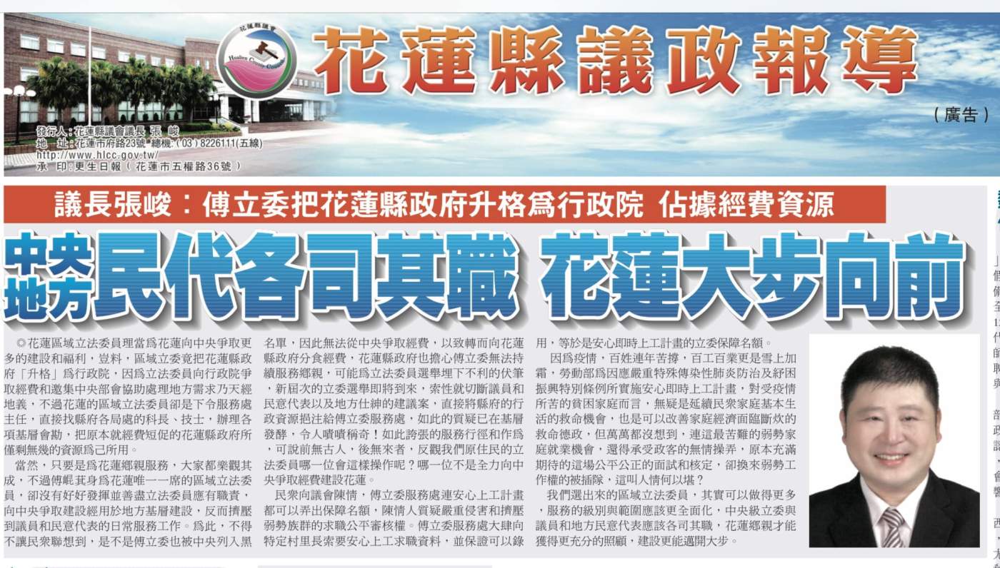 議長張峻:傅立委竟把花蓮縣政府升格為行政院 佔據經費資源