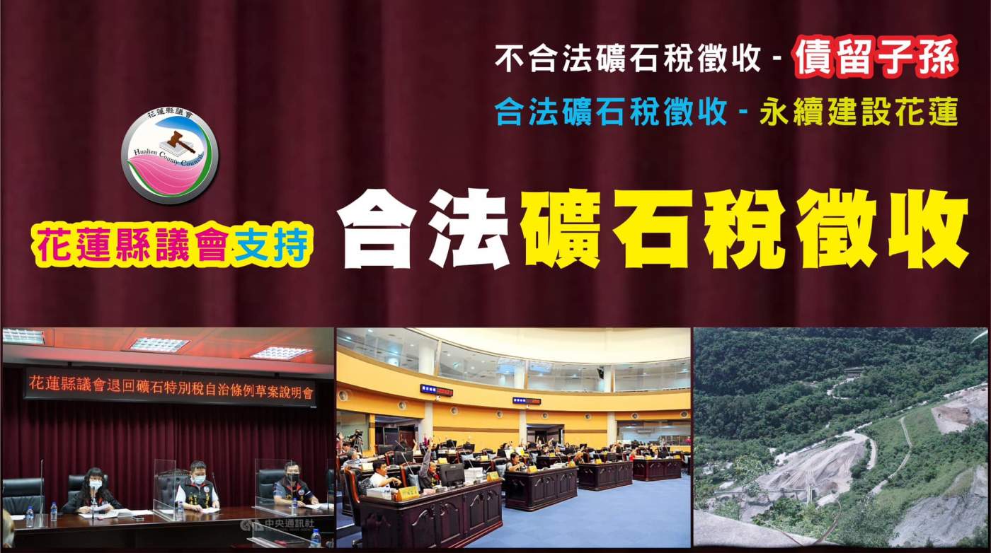 花蓮縣府從2009年起訂定《花蓮縣礦石開採特別稅自治條例》,課徵稅額每公噸從一開始的4元、5.2元逐漸增加到10元,前縣長傅崐萁2016年提前廢止未施行期滿10元舊法,另制定新法提高到100元送議會審議,經第18屆議會多數議員審議後以70元通過,有水泥業者認為漲幅達到7倍過大,以違反租稅法律原則、比例原則及平等原則,把2016到2019年收到的7件課稅處分合計6億多元,向法院提出行政訴訟。