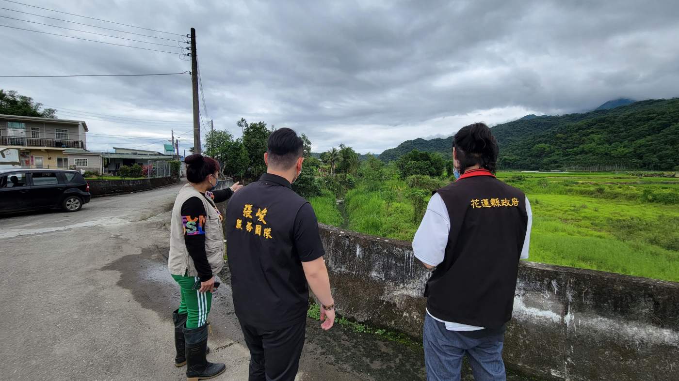花蓮縣議會議長張峻5/16日下午邀集花蓮縣政府農業處農工科王立勳技士、春日里黃姓農民、玉里鎮公所建設課承辦人員,在張峻議長服務處張宸瑋主任的陪同下一起前往現場會勘。