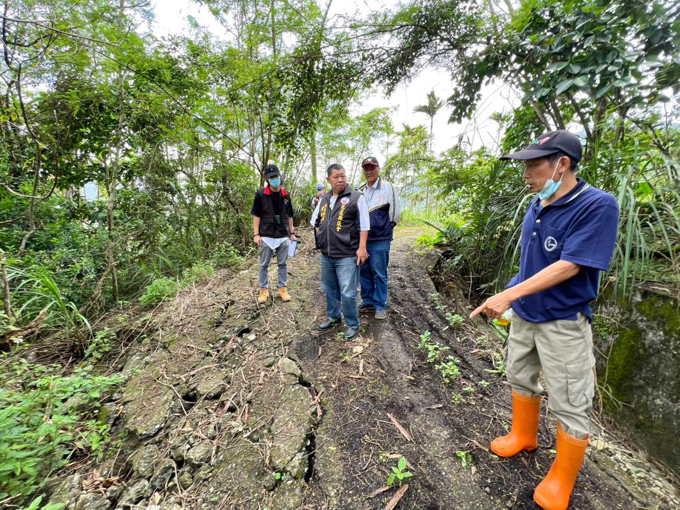 花蓮縣議會議長張峻5/24日上午請議長服務處主任張宸瑋及服務團隊前往現場,並邀集花蓮縣政府農業處農工科技士王立勳、中區服務中心主任賴錦昌、鳳林鎮公所農業課林鴻霖及粘姓、游姓…等農民一同前往陳情現場會勘。經現場會勘發現該農路柔腸寸斷、殘破不堪,路面掀起、路基掏空、護欄整片坍崩、鋪面嚴重龜裂、原4米農路如今已限縮至2米、後段100米完全毀壞,車輛無法通行,農民只能徒步前往耕地。