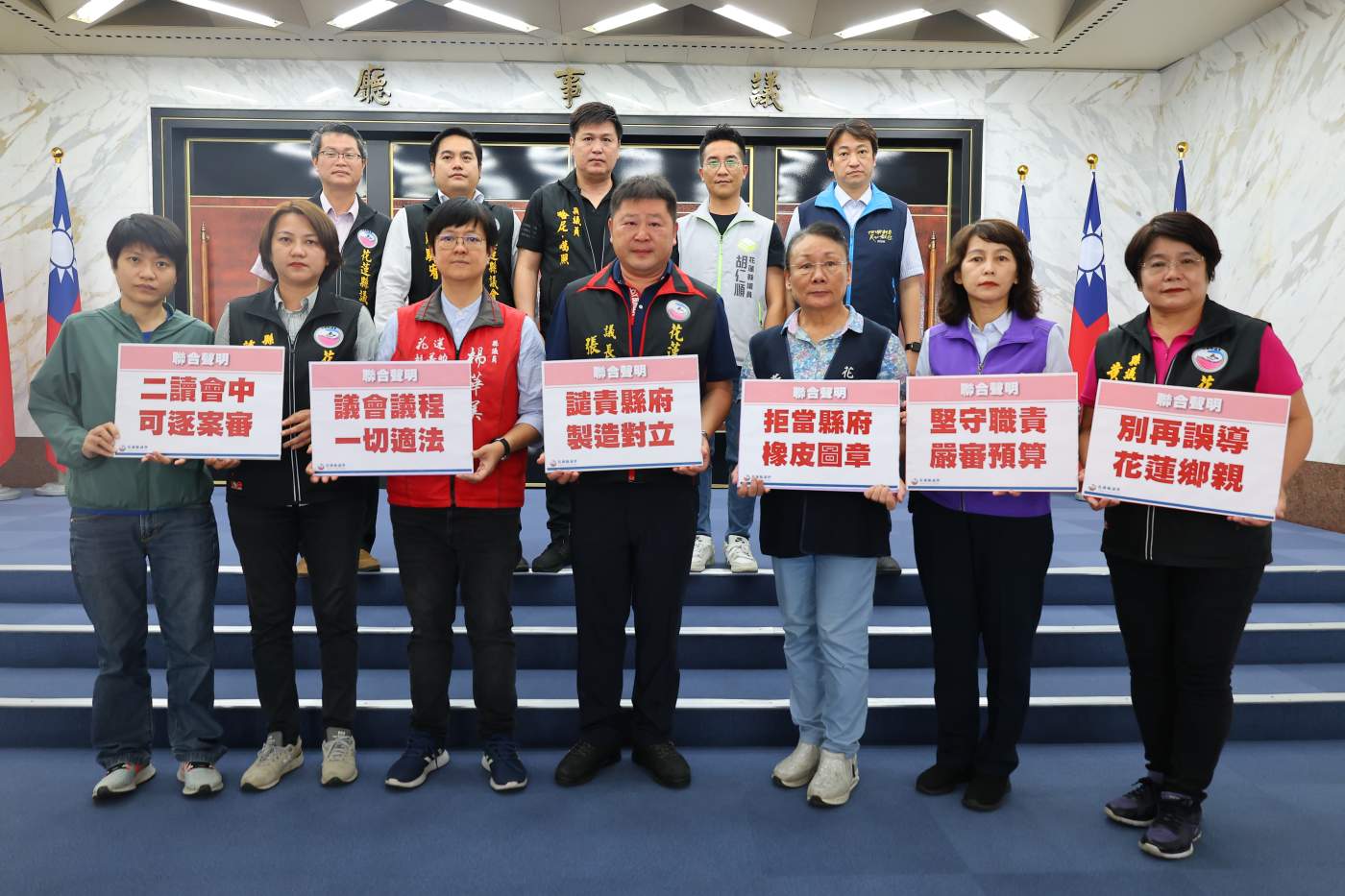 花蓮縣議會第20屆第二次臨時大會6月5日召開在即,針對花蓮縣政府無端指控花蓮縣議會延宕議事、持續不斷誤導選民之舉動,花蓮縣議會十多位跨黨派議員5月26日發表聯合聲明,強調堅守職責、嚴審預算、為民把關、拒當縣府的橡皮圖章,且議會議程一切適法,希望縣長徐榛蔚尊重議會監督職責,不要再誤導鄉親、製造地方對立,也要請徐縣長提醒局處長回歸專業做足功課,提供正確詳實資料讓議員審議,才是百姓之福。