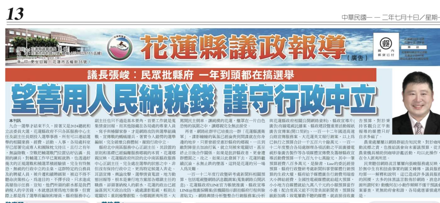 112年07月10日花蓮縣議會-議長議政報導-民眾批縣府 一年到頭都在搞選舉