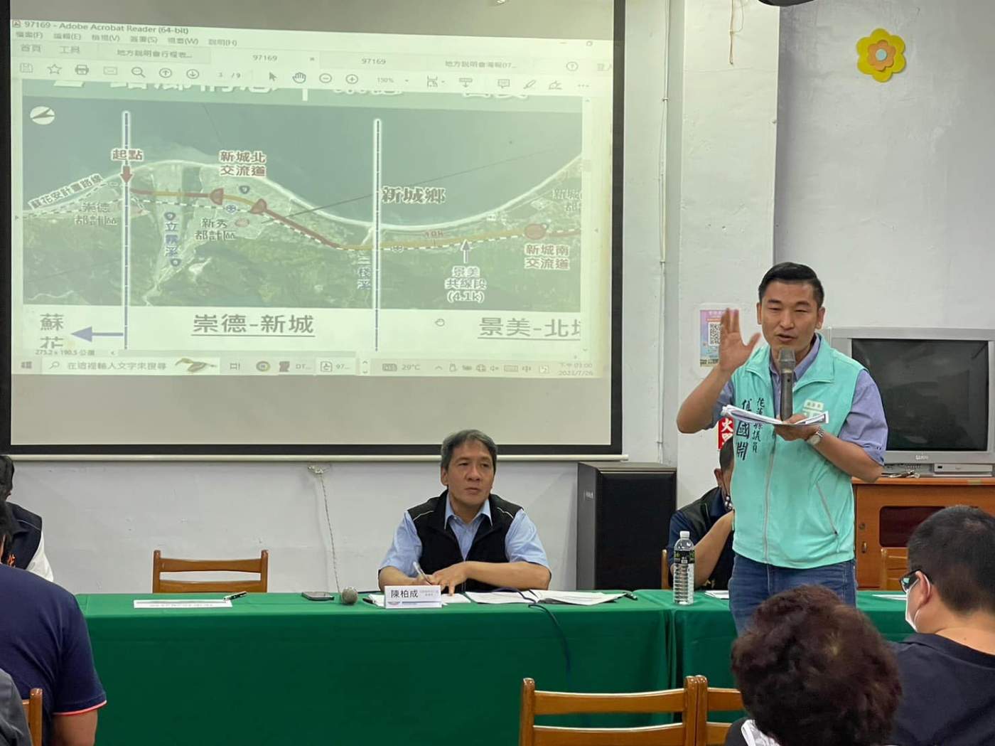 今天交通部公路總局在新城鄉公所的北埔村辦公室召開「花東快速公路可行性評估地方說明會」,會議中國淵迫切希望花東快速道路能夠儘速發包施工,這樣才能離完工通車的一天更進一步,花蓮台東兩縣鄉親的期待,早日完成台灣環道交通網絡。持續推動中!